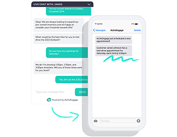 Transform the way you connect with today’s car buyers by using the most comprehensive automotive messaging solution on the market. With ActivEngage, your dealership can have conversations across all your digital channels that increase engagement, leads, appointments and sales.