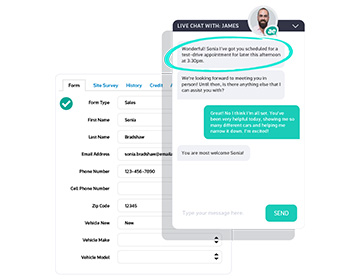 ActivEngage’s web-based platform is your hub for all digital conversations. Features like PreRead™ and Lead Form AutoFill help your team’s efficiency, while Chat Transfer and Lead Routing offer a seamless experience for you and your customers. And, all chat transcripts and lead information are sent directly to your CRM for streamlined, effective follow-up.