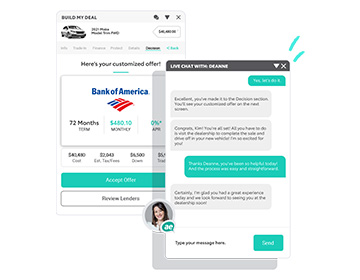 Add messaging to your digital retailing tool for a guided online car buying experience! Our professionally-trained team (or yours) can help move consumers down-funnel by answering questions in real-time and building buyer confidence that increases completion.