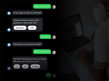 Not every chat message requires a staff member to create a great customer experience. To help give our dealers precious time back to focus on their businesses, we developed Ana Bot™, a friendly natural-language A.I. that’s learned some pretty powerful tricks all on her own, including how to provide instant trade-in estimates, unlock pricing on your DI website, and schedule appointments — all while capturing leads without ever needing the dreaded “Get E-Price” form fill.