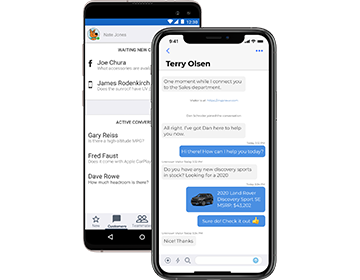 Conversations™ comes standard with both iOS and Android mobile apps so your teams can continue to connect with customers whether they’re on the sales floor or in the service bay. Both app experiences seamlessly maintain the entire suite of features on your teams’ mobile devices, keeping powerful features like The Glovebox, internal transfer, and live video chat just a tap away.