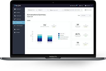 Conversations™ data seamlessly integrates into our proprietary reporting software PRIZM™, so you can see your messaging performance across every channel alongside website analytics, paid search performance, Dealer Inspire support requests, and more. Inside PRIZM™ you’ll be able to see Conversations messaging metrics like chat volume across all channels, the response performance of your team, and matchback reporting so you know when chat played a role in a sale.