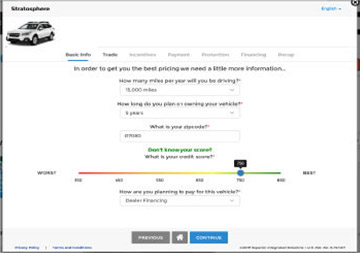 Deal specific and vehicle specific factors combined with ownership needs are analyzed to make smart recommendations with simultaneous real time rating calls to your product provider.