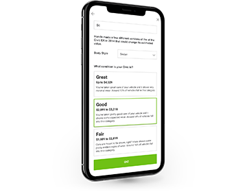 Enable shoppers to get instant, fair-market trade-in estimate ranges that calculate into their payment options. You can also choose to offer firm estimates based on 360° photos shoppers can easily take, upload, and send to you for appraisal.
