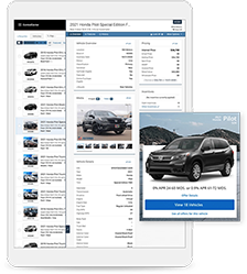 Promote your most important marketing messages to shoppers through our Specials and Incentives solution. Automatically deploy creative featuring OEM incentives via your existing OEM feed.